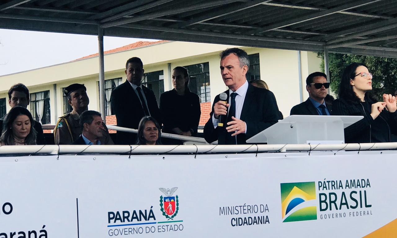 O evento foi realizado na Academia Policial Militar do Guatupê e contou com a presença da primeira-dama do Brasil, Michelle Bolsonaro, da ministra da Mulher, da Família e dos Direitos Humanos, Damares Alves, do ministro da Cidadania, Osmar Terra, do governador do Estado, Ratinho Junior, do coordenador da Bancada Paranaense, deputado federal Toninho Wandscheer e demais autoridades do Estado.